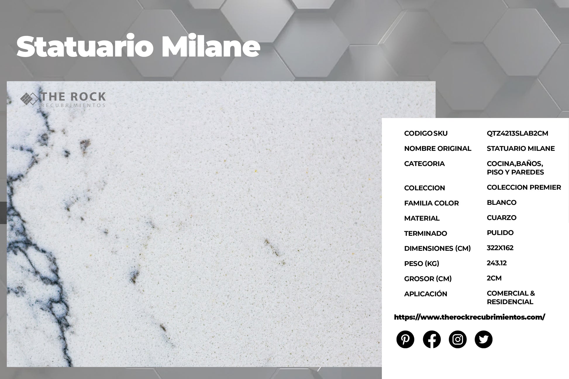STATUARIO MILANE | PANEL DE CUARZO PARA PAREDES Y COCINAS